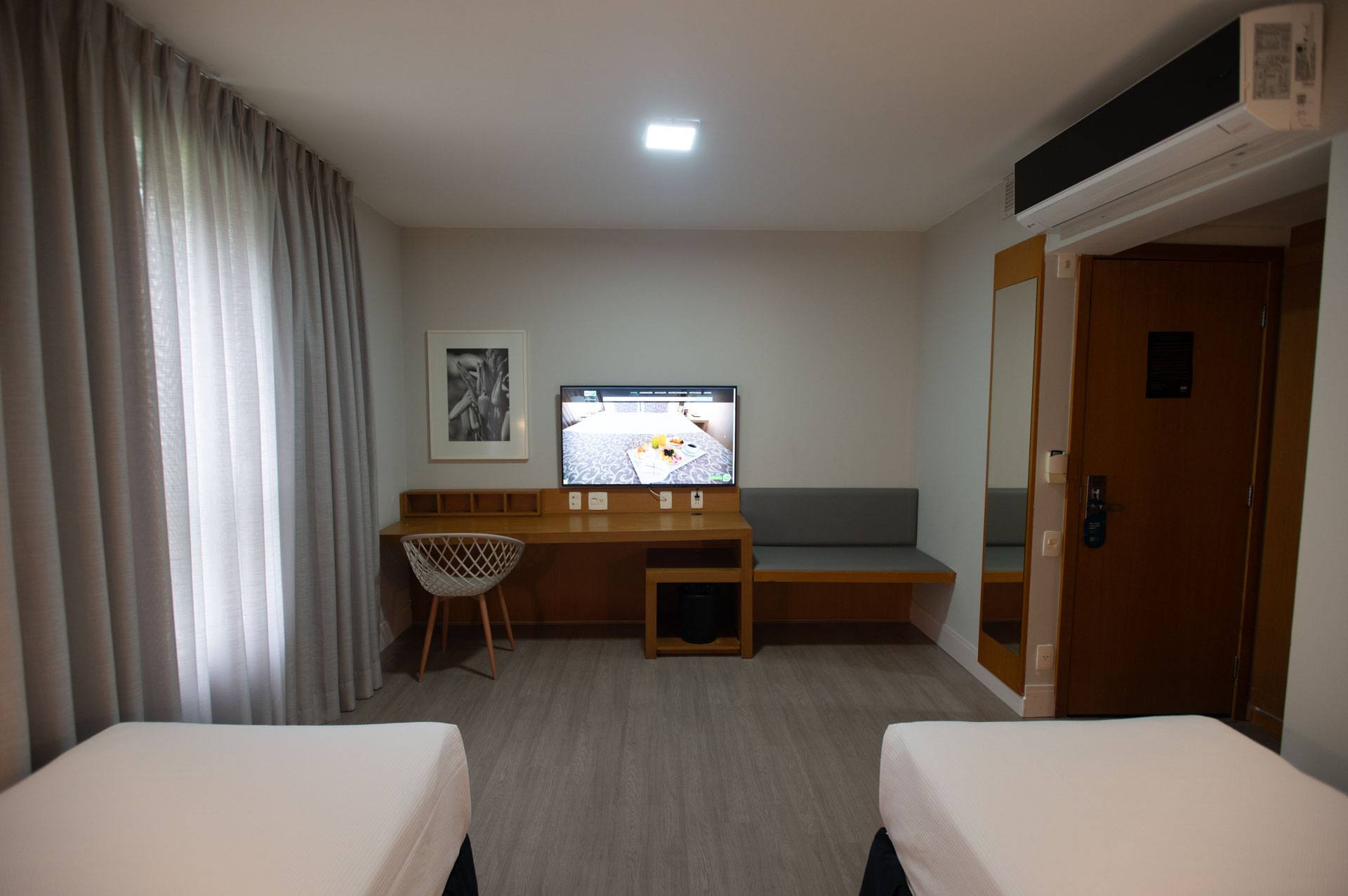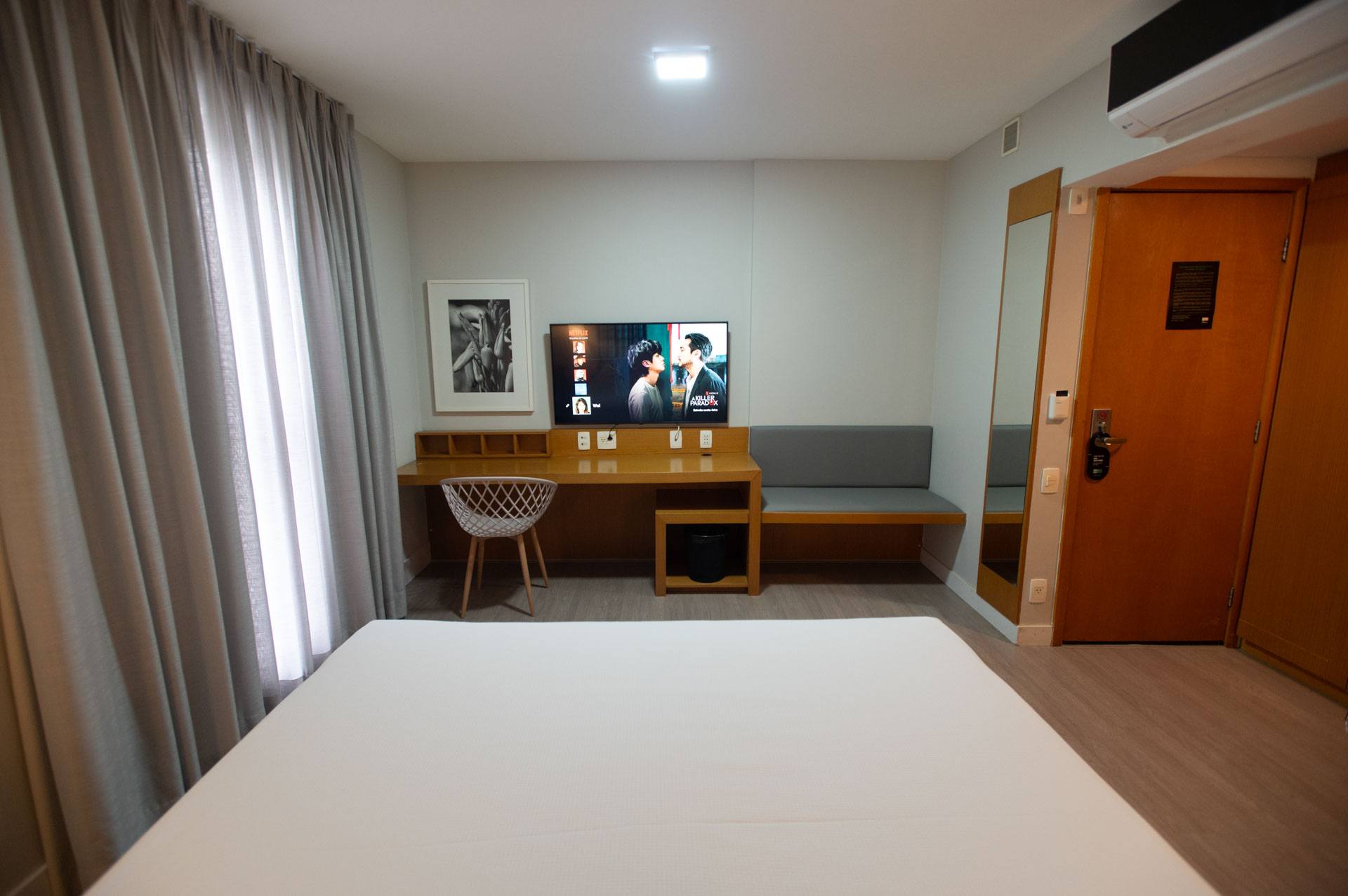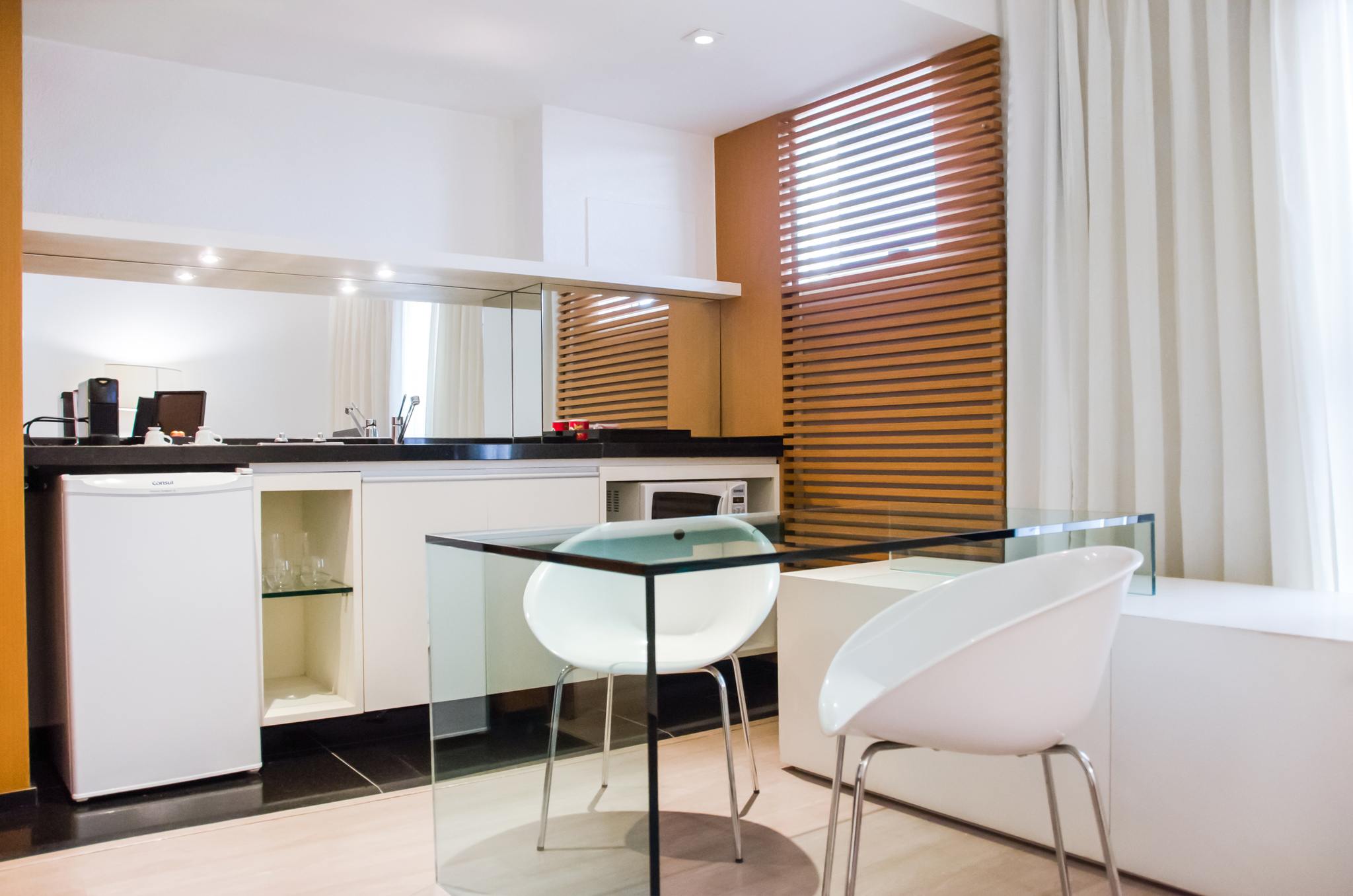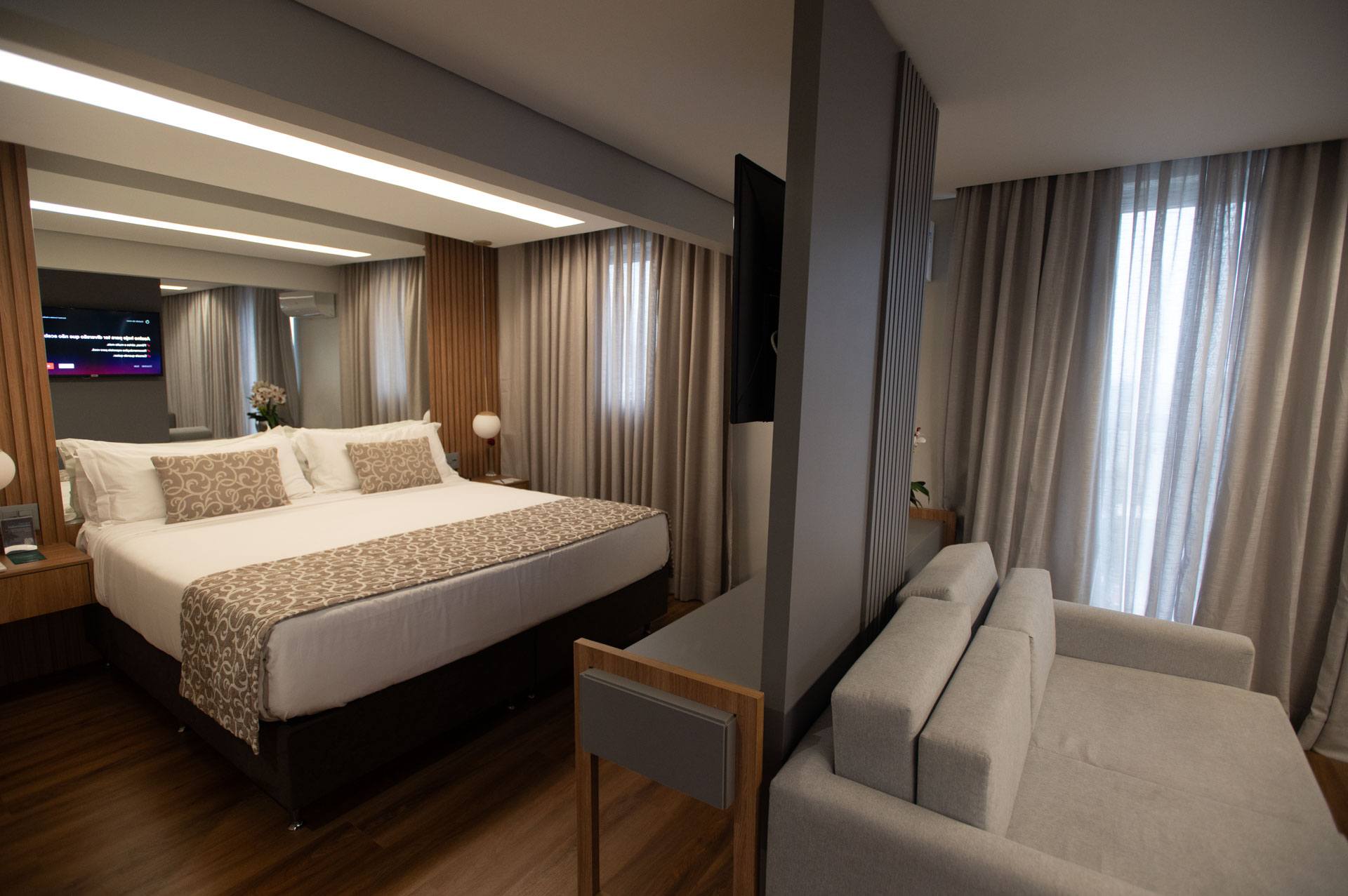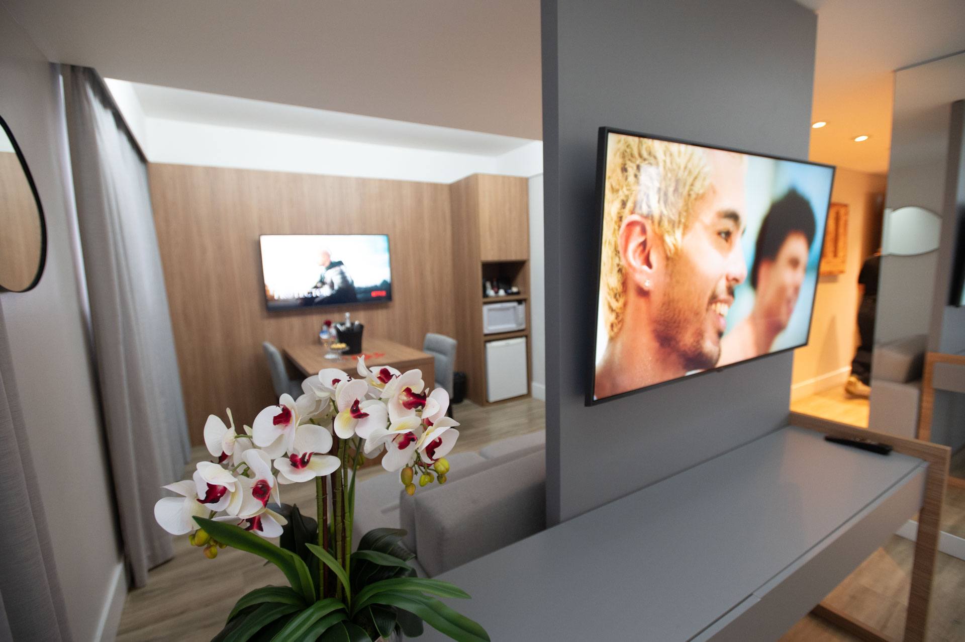 Esta categoria disponibiliza as seguintes comodidades extra: Máquina de café expresso, mini cozinha, sala de estar com TV Smart 50" 4K, roupas de cama 100% algodão, edredom com Duvet e acomoda 01 cama extra com custo adicional a cada diária, e deverá ser solicitada com 24h de antecedência ao check-in.