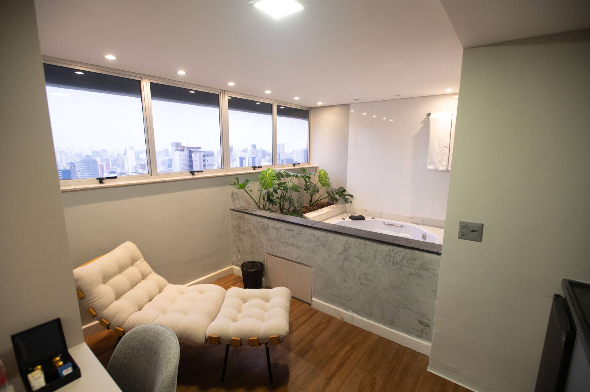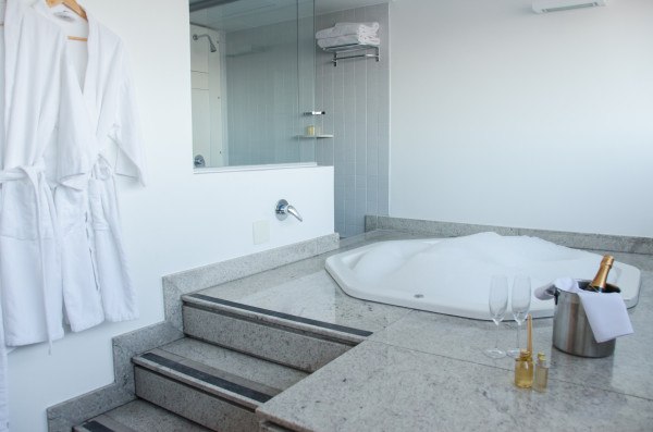 Todas as Coberturas dispõe de banheira de hidromassagem, roupões, sais de banho, e vista para a cidade de Belo Horizonte.